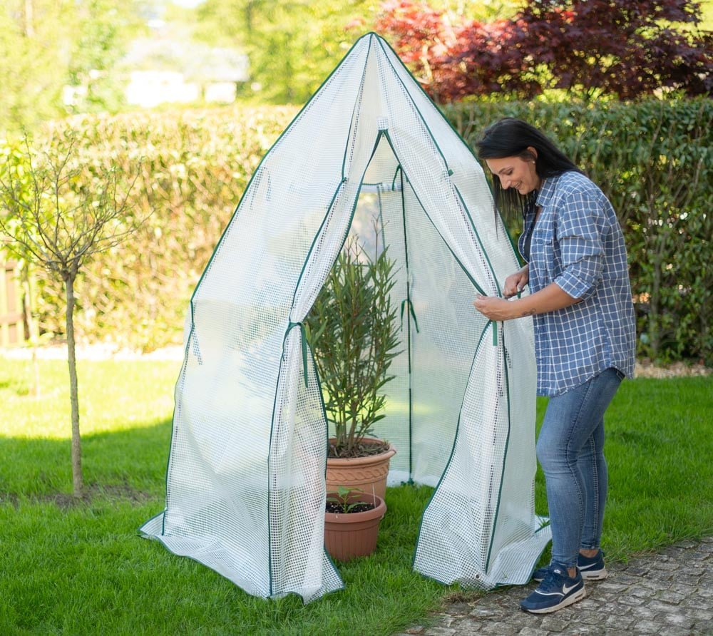V lete fóliovník, v zime hibernačný stan - Olive od Westmann je pre vás dokonalým pomocníkom, ktorý spoľahlivo ochráni vaše rastliny po celý rok. Univerzálny fóliovník je podopretý stabilnou oceľovou rámovou konštrukciou. V lete plastová fólia odolná voči UV žiareniu chráni pred slnkom a poskytuje potrebný tieň. Izolácia fólie zároveň chráni chladné teploty pred vašimi rastlinami v zime. Vstup do skleníka sa dá jednoducho otvárať zipsom a vďaka pútkam jednoducho upevniť. Integrované okienko navyše zaisťuje optimálnu cirkuláciu vzduchu vo vnútri, aby sa vašim rastlinám darilo alebo aby boli uskladnené v optimálnych podmienkach. Montáž fóliovníka Olive je hračkou a nevyžaduje žiadne ďalšie nástroje, môže byť zriadený na požadovanom mieste do hodiny. Pomocou priložených zemných kotiev a veterných kotiev ho možno bezpečne a rýchlo upevniť k zemi.