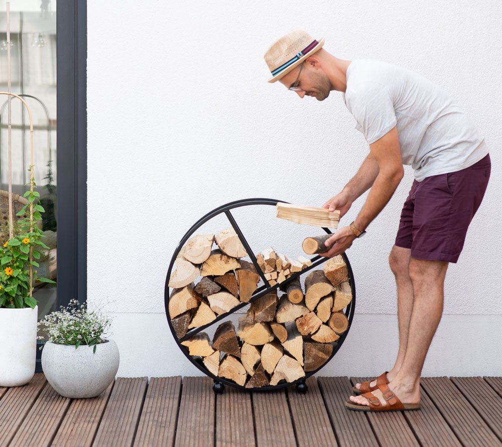 Minimalistický dizajn, maximálna funkčnosť - stojan na palivové drevo Osiris od Westmann boduje okrúhlou oceľovou konštrukciou v industriálnom dizajne, nízkou hmotnosťou a jednoduchou použiteľnosťou.