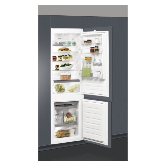 Vstavaná kombinovaná chladnička ART 66112 so samostatnou mrazničkou dole v energetickej triede E s elektronickým ovládaním. technológia 6. ZMYSEL,LED osvetlenie, LessFrost systém - redukovaná námraza na vnútorných stenách mrazničky. Už žiadne mraziace rošty, viac vnútorného priestoru v mrazničke!, odolnosť pri výpadku prúdu: 19 h, praktické prestaviteľné sklenené poličky a priečinky vo dverách chladničky, veľká zásuvka na ovocie a zeleninu., vnútorné zásuvky v mrazničke pre prehľadné skladovanie potravín, jedna maxi zásuvka, kapacita mrazenia: 3,5 kg/24 h, využiteľný objem chlad./mraz.: 194/79 l, hlučnosť 35 dB, Zameniteľné otváranie dverí, inštalácia do skrine, spojenie nábytkových dverí posuvnými koľajničkami.