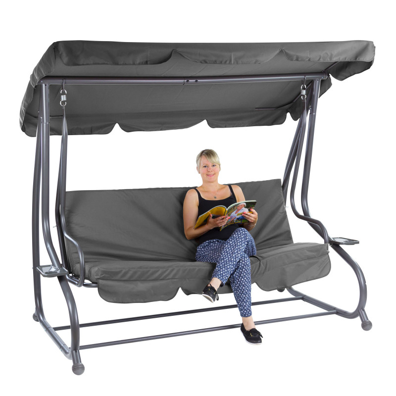 : DEMAZáhradná hojdačka patrí medzi najobľúbenejšie miesta na zrelaxovanie a oddych po práci. Vďaka elegantnému dizajnu je pekným doplnkom záhrad, terás, balkónov alebo loggií. Hojdačka má pevnú kovovú konštrukciu a po sklopení operadla poskytuje dostatok miesta na opaľovanie pre dve osoby.