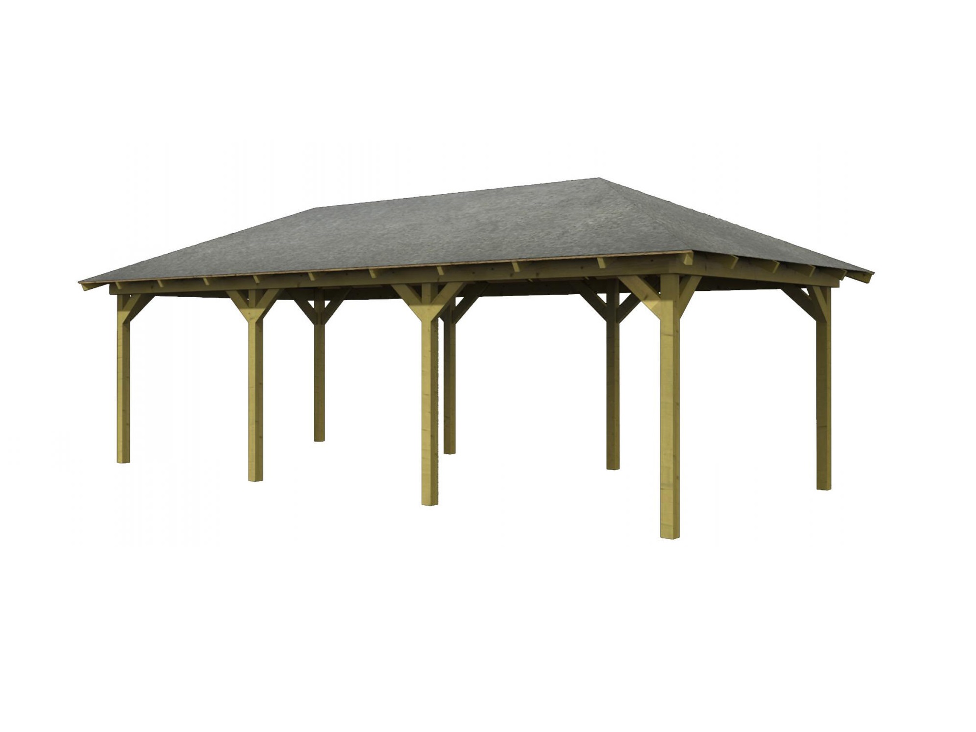 Pavilón má základný štvorcový tvar a vďaka vnútornému rozmeru 2,71 x 6,21 m ponúka dostatok priestoru pre letné posedenie, grilovanie, relaxáciu i rodinnú oslavu. Celková zastrešená plocha je 3,45 x 6,96 m. Výška boku je 2,10 m a výška hrebeňa 2,96 m. Osem stĺpikov 9 x 9 cm podopiera strechu s masívnymi priečnymi podperami. Konštrukcia altánku je tlakovo impregnovaná a je tak dobre chránená proti drevokazným hubám aj hmyzu, ale aj proti nepriaznivým poveternostným podmienkam. Impregnácia je zdravotne nezávadná a úplne bezpečná. Vzhľadom k veľkým plochám strechy a zaťaženie vetrom je nutné pripevniť altánok k zemi pomocou zodpovedajúcich H kotiev v dĺžke cca 60 cm (nie sú obsahom dodávky).