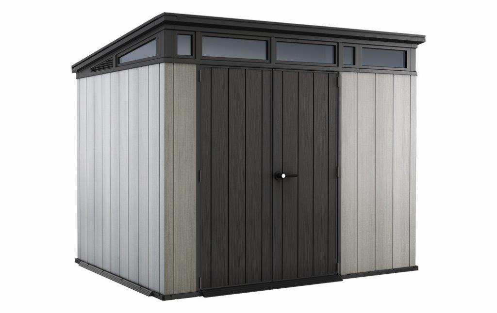 : KeterZáhradný domček na skladovanie záhradného i dielenského náradia, športového náčinia a ďalšieho vybavenia, podlahový panel s výdržou až 200 kg/m2, dvojité steny, materiál Duotech, živica a oceľová výstuž, ventilačný systém. Šedý/grafitový.