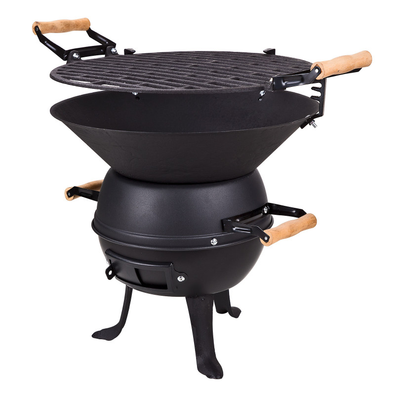 : DEMANádoba na uhlie vyrobená z liatiny, spodná časť, konzoly a nohy vyrobené zo špeciálne potiahnutého kovu. Mriežka roštu nastaviteľná v 4 polohách, kovový rošt na grilovanie, nastaviteľný prívod vzduchu, jednoduché čistenie, praktické drevené rukoväte, pekný dizajn. Dodáva sa v demonte.