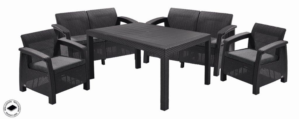 Záhradný nábytok Keter Corfu Fiesta set dve dvojsedačky + dve kreslá + stôl grafitový
