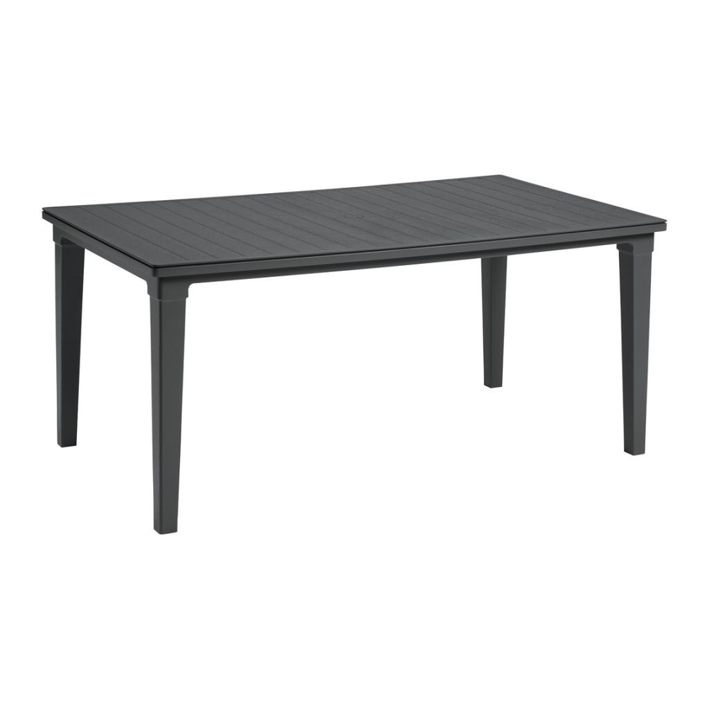: KeterElegantný obdĺžnikový stôl pre až 6 osôb, imitácia prírodného ratanu, vhodný do interiéru aj exteriéru, odolnosť voči rôznorodým vplyvom - opotrebenie, vlhkosť, hniloba či rozmary počasia, otvor pre slnečník. Vysoká stálosť farby, farba grafit.