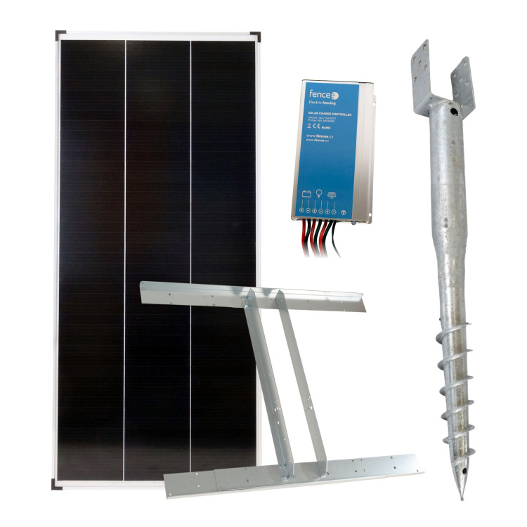 Základná sada solárne napájanie ohradníka, panel 200 W, držiak zemný vrut, konzola, regulátor 15 A