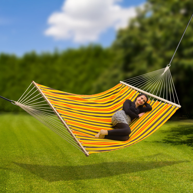 : DEMAZávesná sieť s pevnými závesnými okami a tyčami z tvrdého dreva. Ponúka relax pri ležaní v tieni stromov. Vhodná na terasu, do záhrady, na kempovanie.