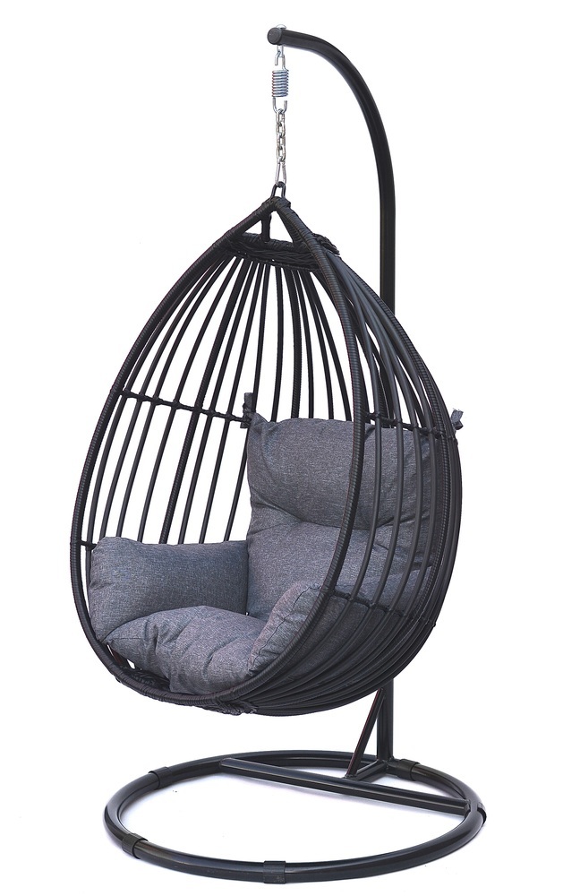 : RojaplastLuxusné závesné kreslo z umelého ratanu, hliníkového rámu a oceľového podstavca a tyče. Hoci umelý ratan pripomína prírodný ratan, je oveľa odolnejší.