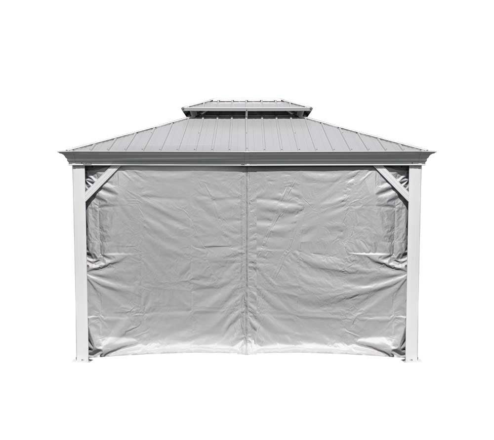 Závesová súprava je na celý altánok a pokrýva všetky strany. Pomocou dvojkoľajového systému sú závesy pripevnené k inej koľajnici k sieti proti komárom. V zatvorenom stave sú závesy pripevnené pomocou klipov. V otvorenom stave sú závesy tiež pripevnené k stĺpikom pomocou slučky. Vstup do pavilónu z každej strany je na zips