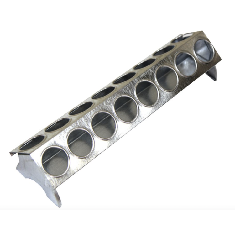 : AgrofortelŽľabové krmítko kovové pre hydinu - 30 cm - kruhové diery - Contro Fratelli 032.10 Ideálne riešenie na kŕmenie malých kuriatok a prepelíc.